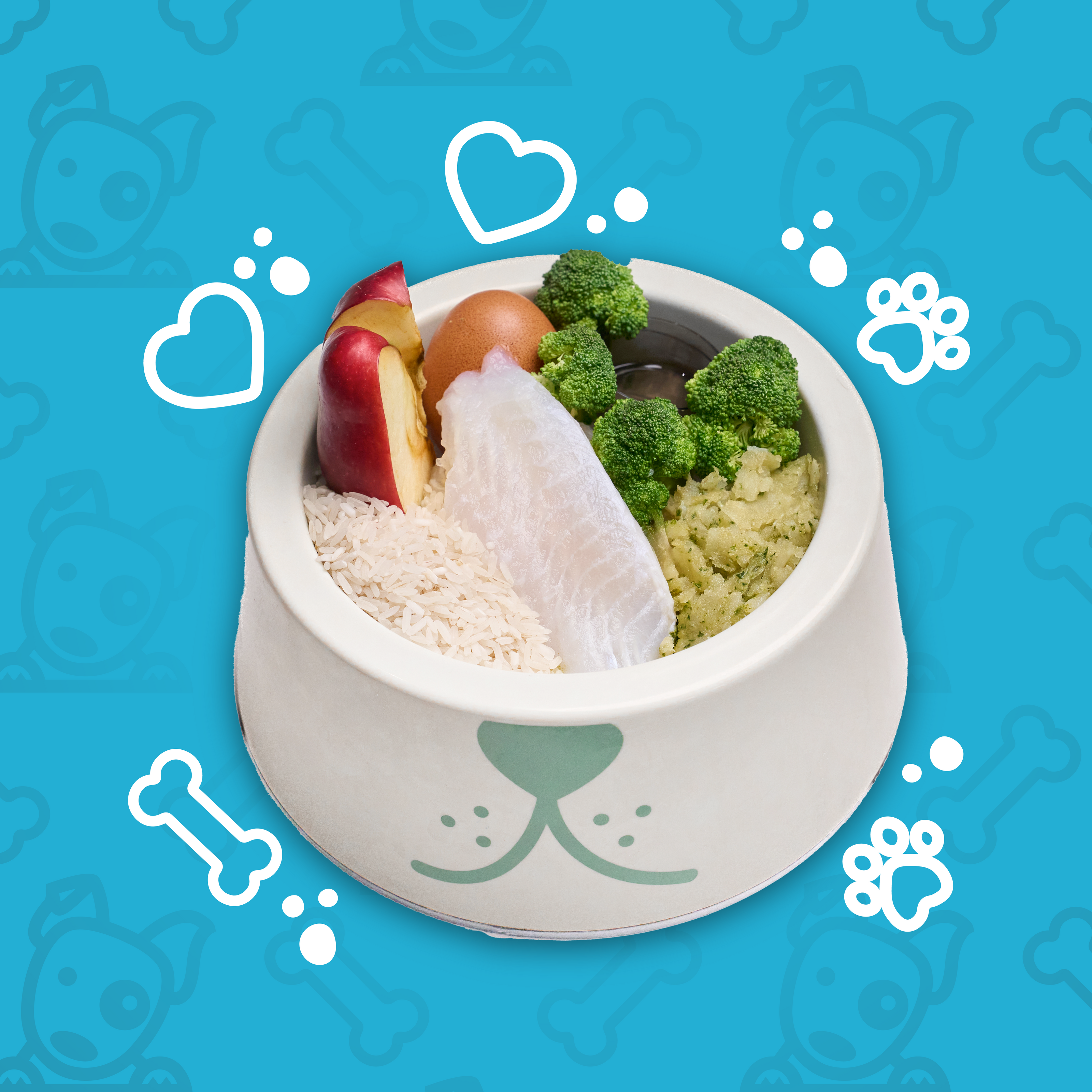 Ingredientes: pescado, brócoli, clara de huevos, manzana, papaya entre otros.