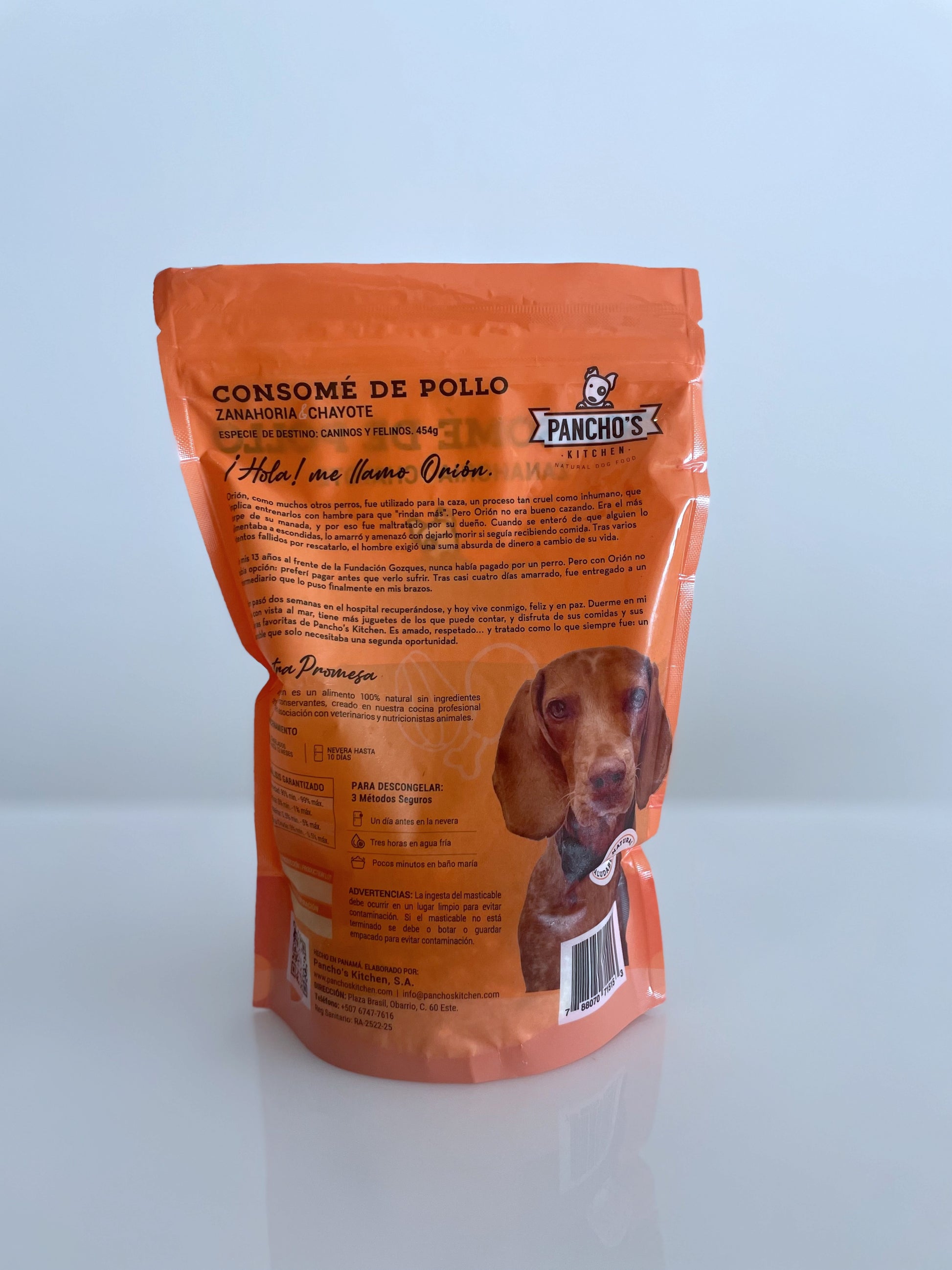 Caldo de Pollo! Delicioso consomé con pechuga de pollo y verduritas listo para hidratar a tu mascota! Puedes darlo cuando están enfermos, sin apetito o cuando lleguen del parque!